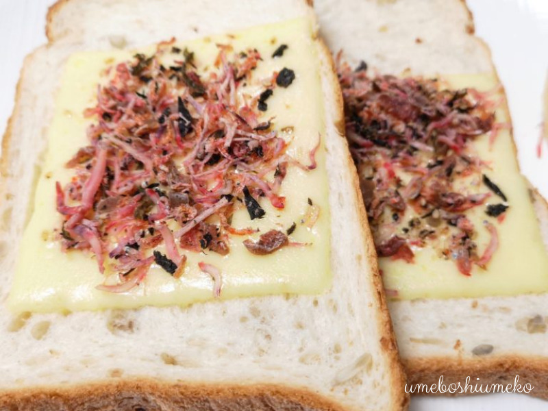 アツアツのごはんに桜えびと梅干しをおにぎりに。