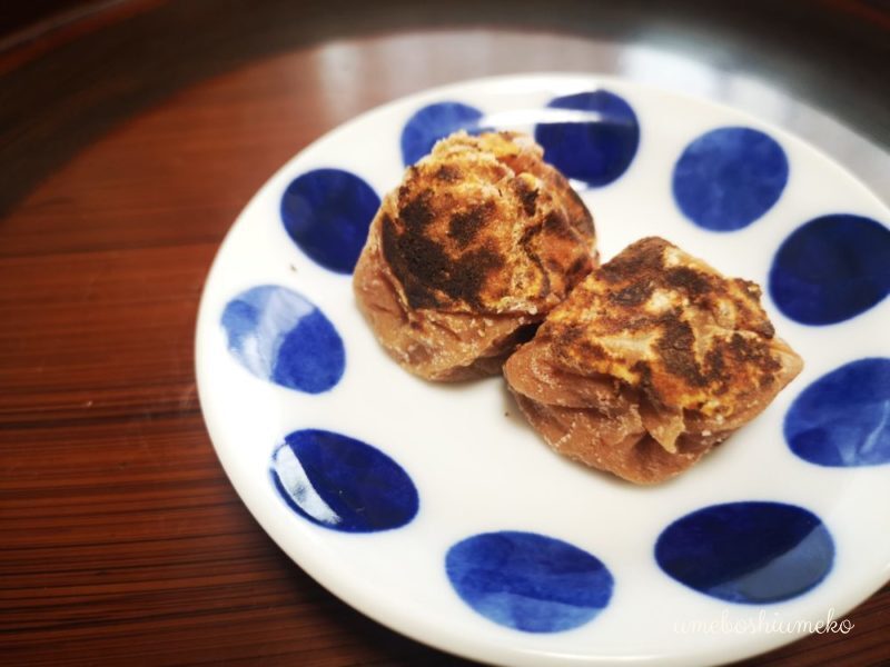 白干梅は塩分が高いのですが、焼くと梅のバニリンという成分でほんのり甘味も出てきます。