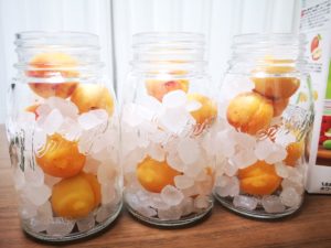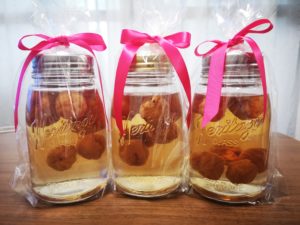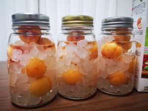 ダイソー、セリア、キャンドルなどの100円均一のお店に売っているガラスの瓶で梅酒を作ってみました。