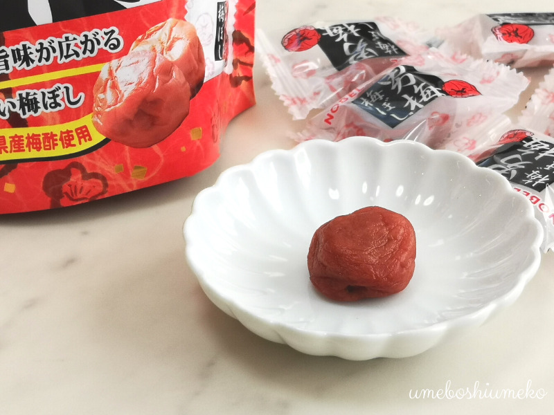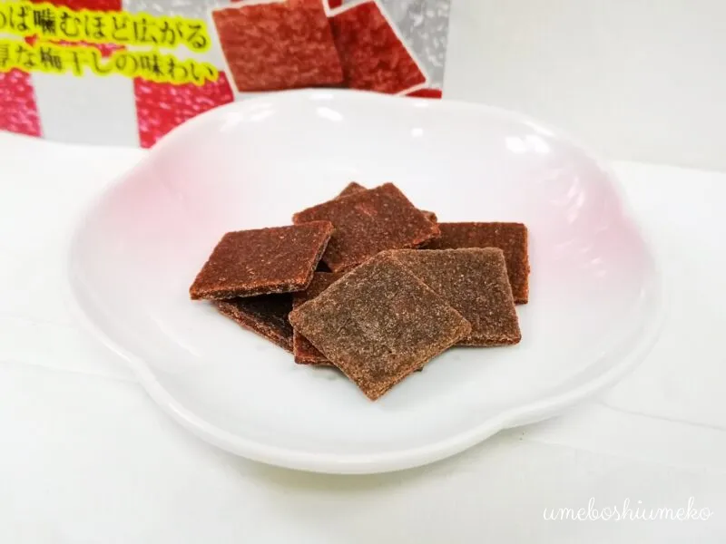 周りにコーティングされている梅干しパウダーが甘じょっぱくてついうっかり何個も食べてしまいそうになります。