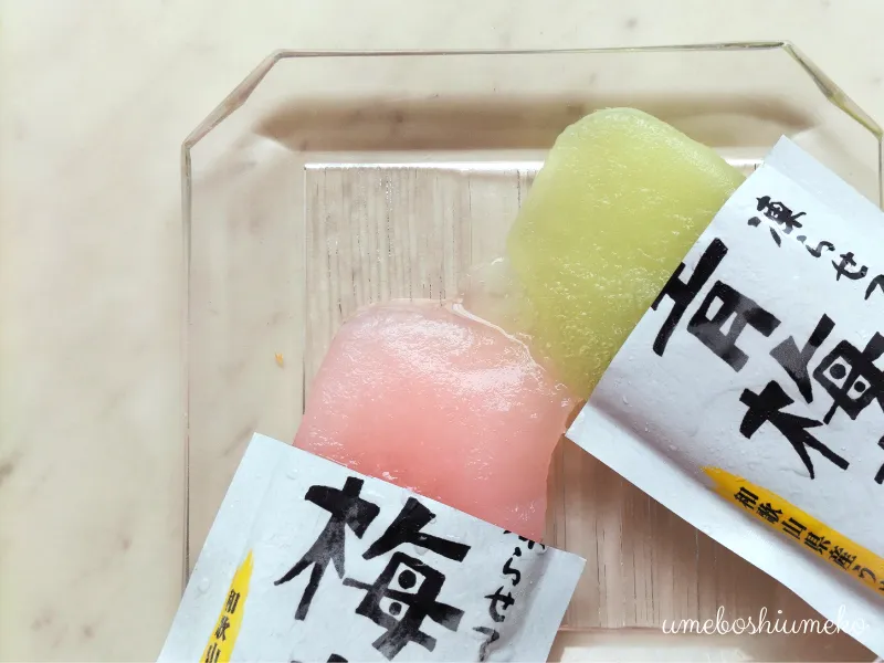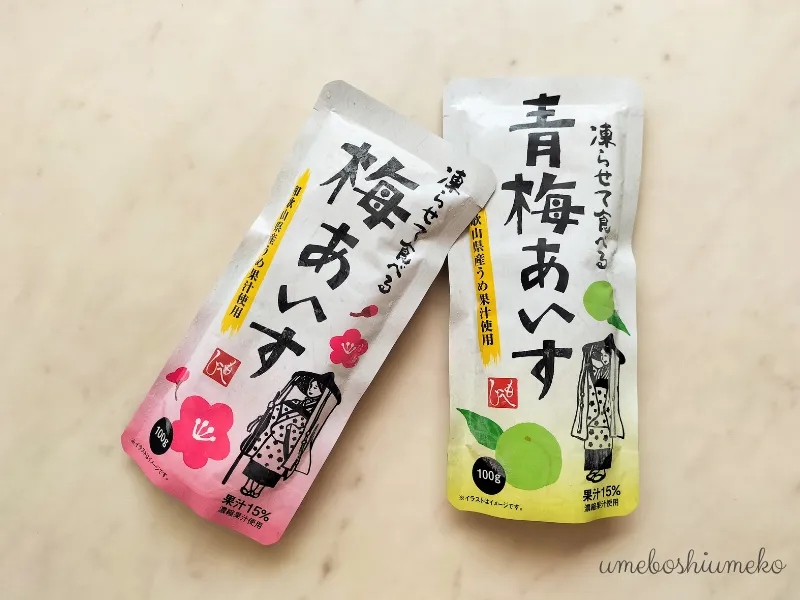 梅アイスはほんのり紫蘇っぽいかおりが、青梅はフルーティーで爽やかな味です。