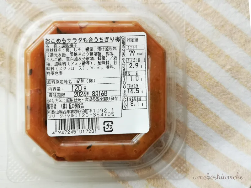 こちらも小粒の梅干しがたくさん入っていて、グラム数は同じなのですがお得感があります。