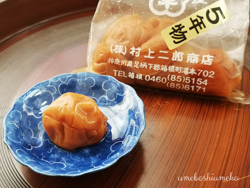 箱根駅伝の中継地点にある昭和20年創業の梅干屋、村上二郎商店の5年物白干梅です。