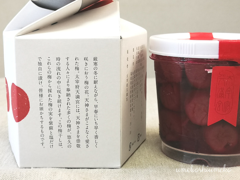 歴史のある大宰府天満宮の梅を使っている、それだけでなんだか感慨深い気持ちになってきませんか。