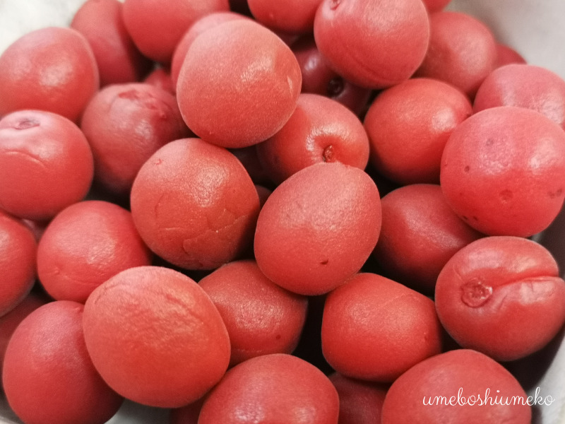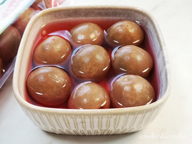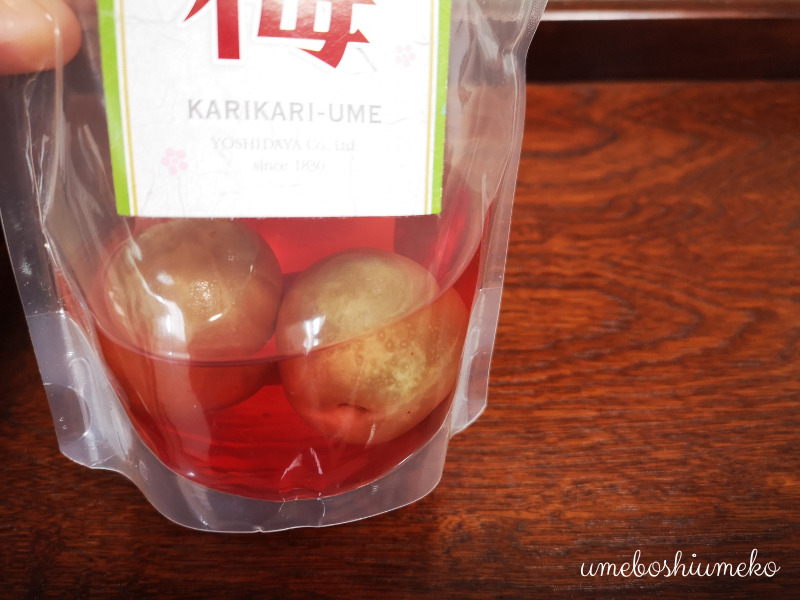 たっぷりの梅酢に漬かっている、めちゃくちゃ酸っぱいカリカリ梅です。
