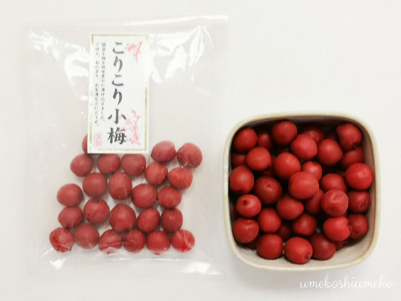 小粒のカリカリ梅で、しょっぱくて食べ始めると止まらなくなる美味しさです。
