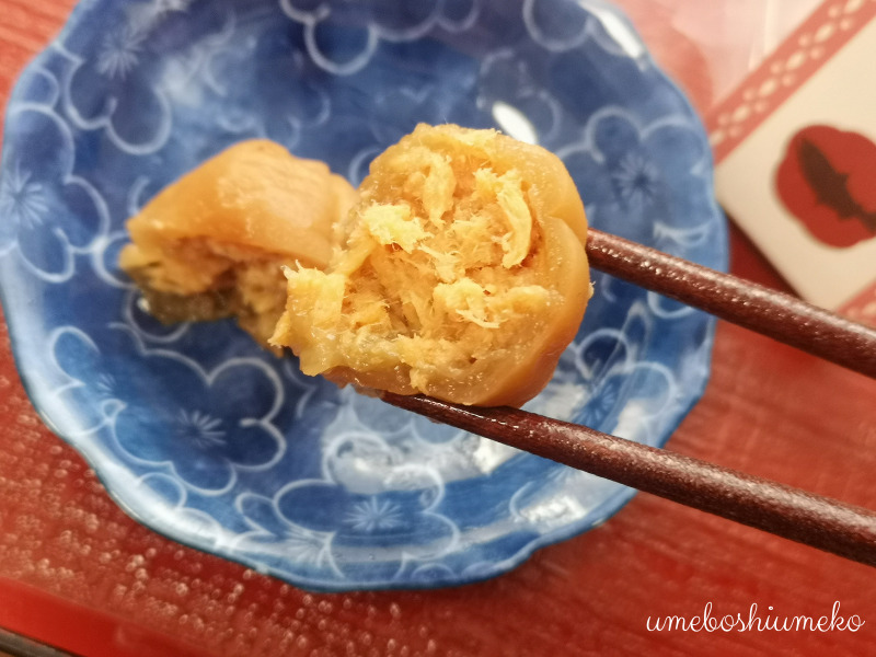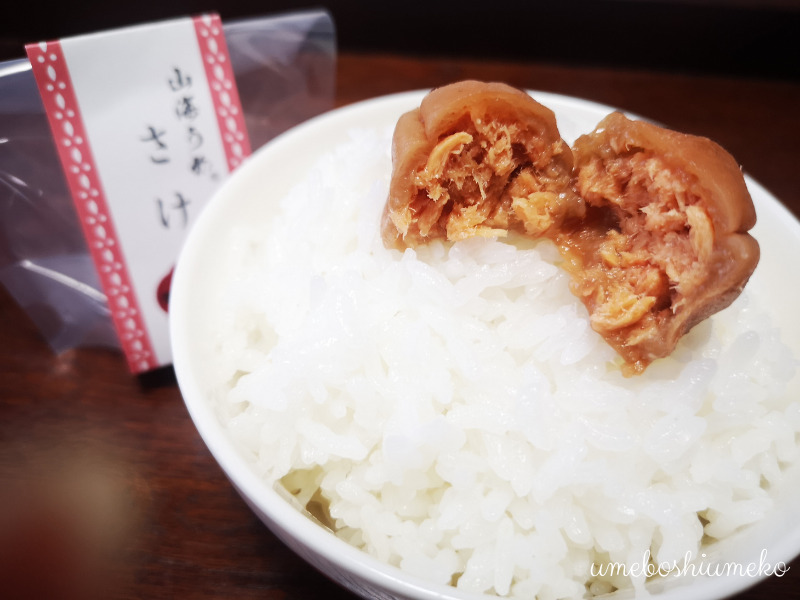 朝食でもおなじみの魚なので、梅干しの中に入っているなんて本当に不思議でどうやってこんなに綺麗に包んであるのか謎ですが、一言でいうと美味しい!です。