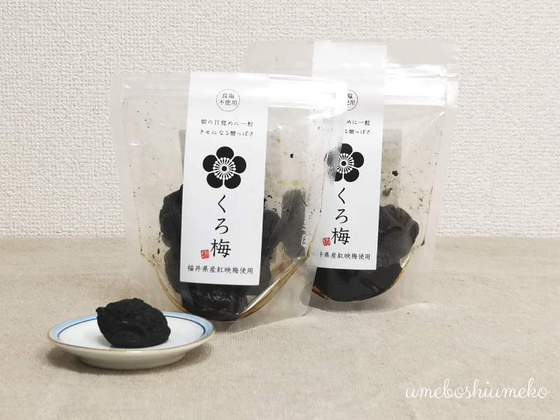 福井県のもっちりとした食感が特徴の紅映梅(べにさし梅)を黒にんにくと同じ製法で無添加、無加水で三か月間熟成させてあります。