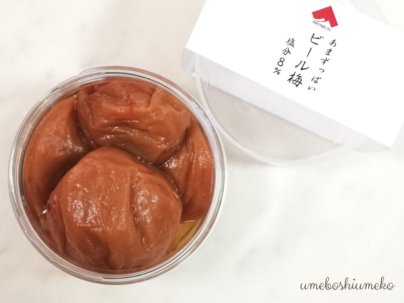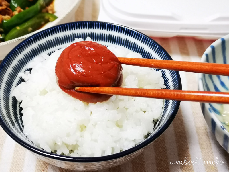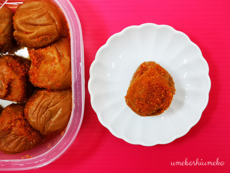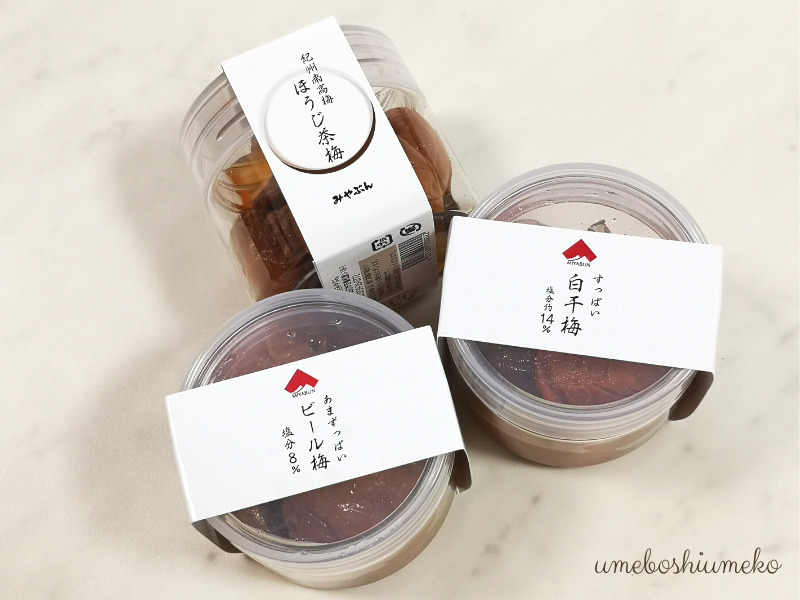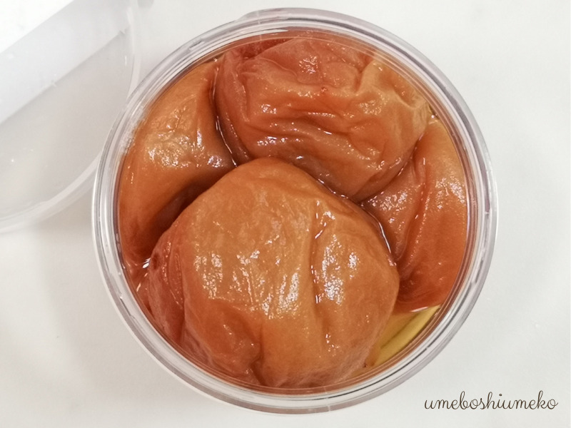 「すっぱい梅干し」と「甘酸っぱい梅干し」の2種類ありますが、「甘ずっぱい梅干し」ははちみつがはいっているのでマイルドでお酢のツンとした感じがそんなに気になりませんでした。