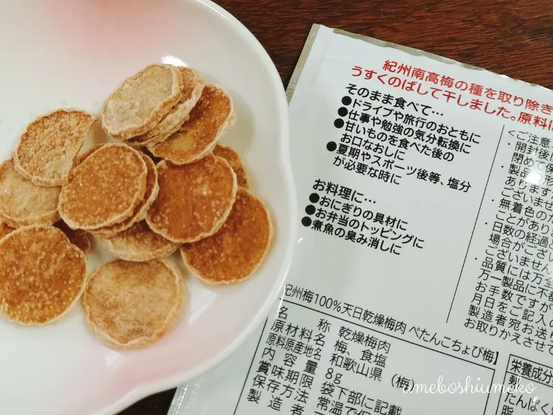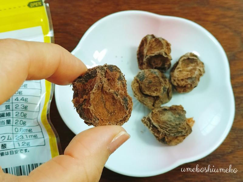 ゴツゴツした触感の干し梅が多いですが、こちらは厚みも均等で上品な味がします。