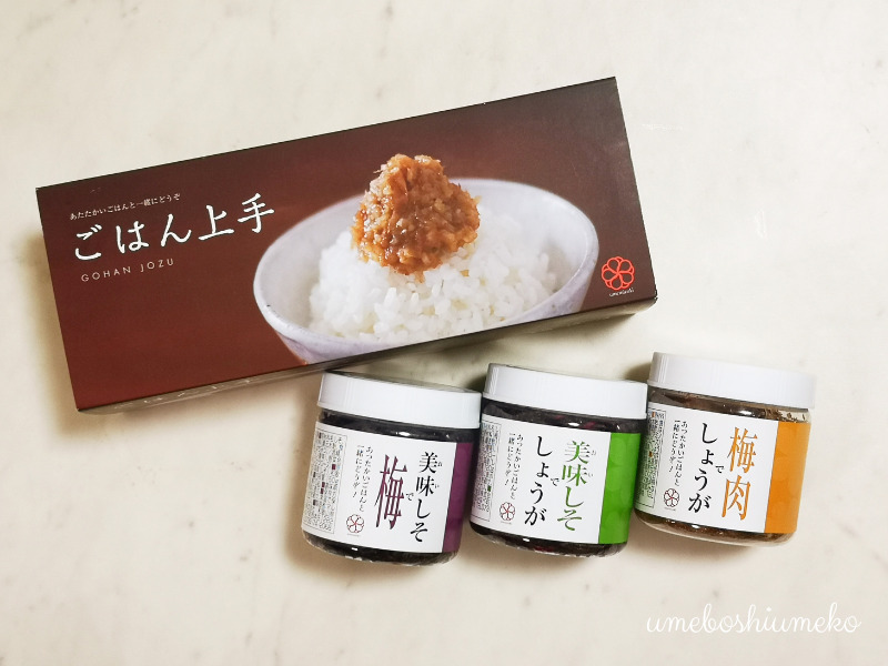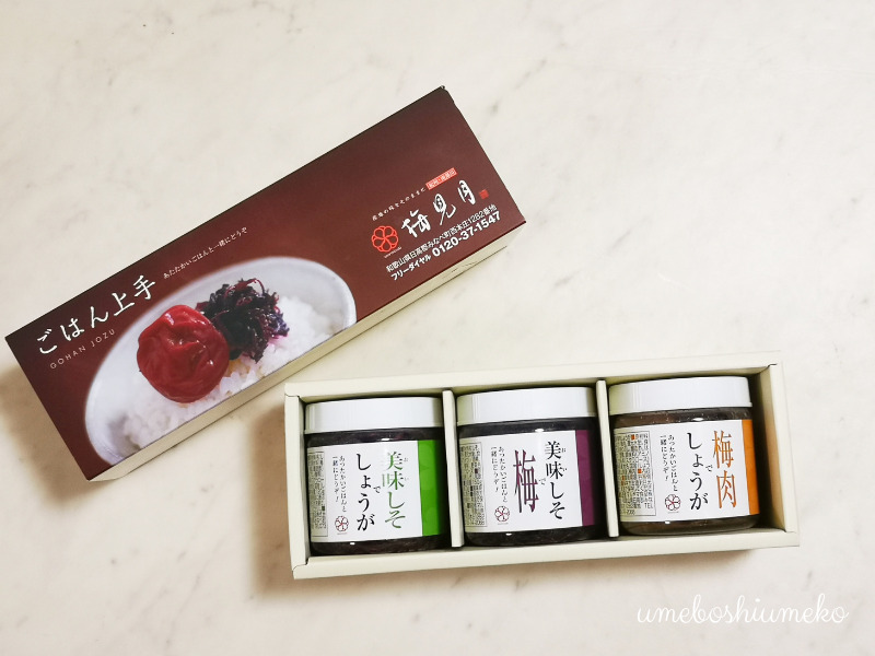 3種類のご飯にぴったりのお惣菜感覚の梅が入っています。