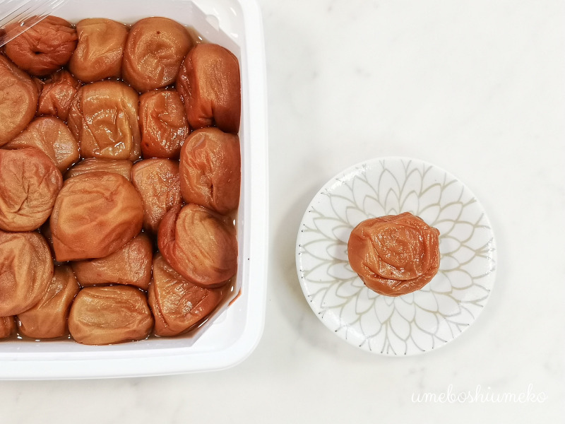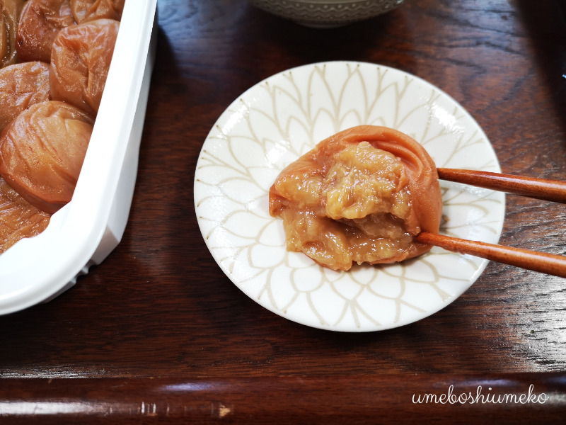 よく見かける干し梅とはまた違った食感と、表面にも塩がキラキラしていてそれも美味しいんです。