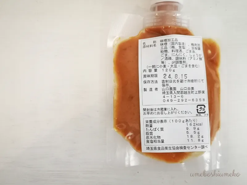 埼玉県越生町で梅作りをされている山口農園さんの万能梅みそです。