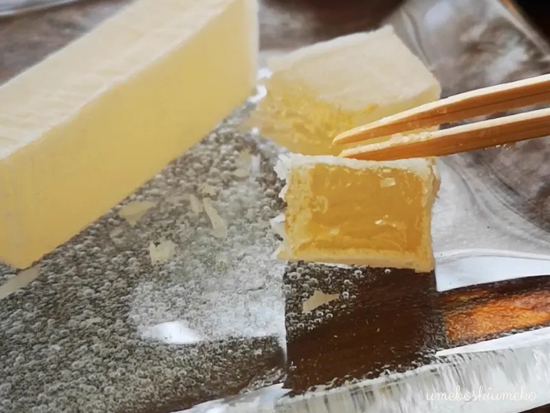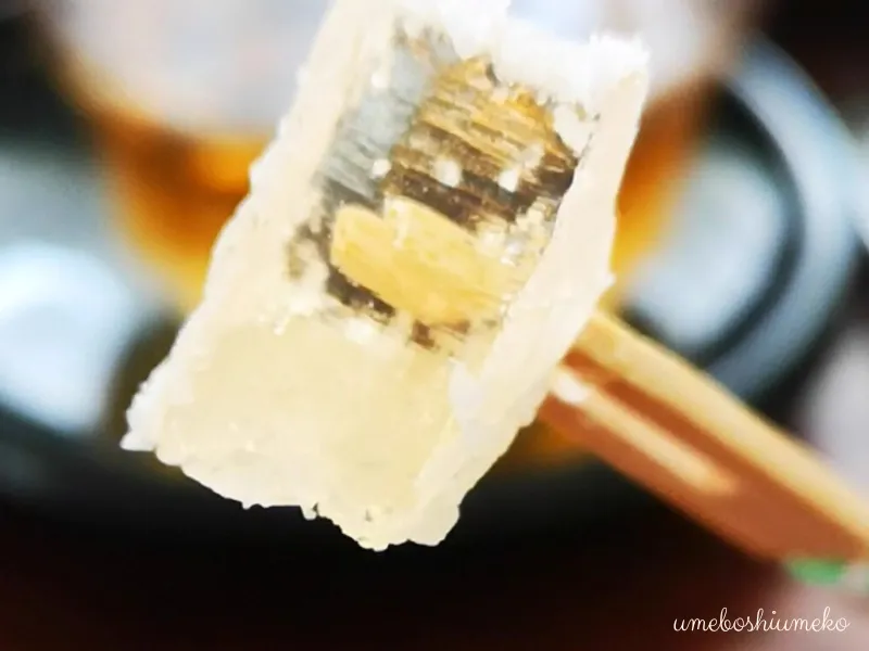 まずは梅酒にし、その後寒天で固め数日乾燥させてあります。