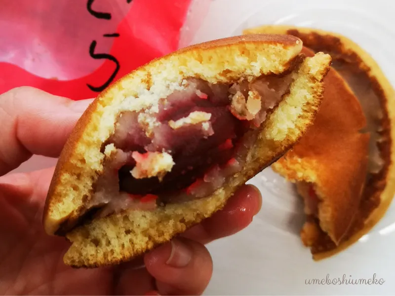 なんと!どら焼きの中に梅がごろっと1個入っています!
