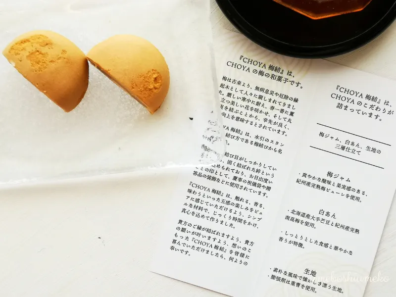 甘さ控えめな梅餡と梅の組み合わせ、たぶんこんな梅の和菓子はどこにもないのではないのでしょうか?