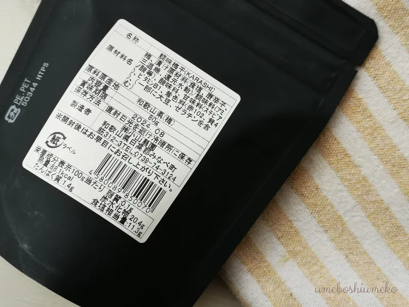 紀州産南高梅の果実クエン酸を含んだ梅塩、北海道産の昆布、静岡県産緑茶などを使って仕上げてあります。