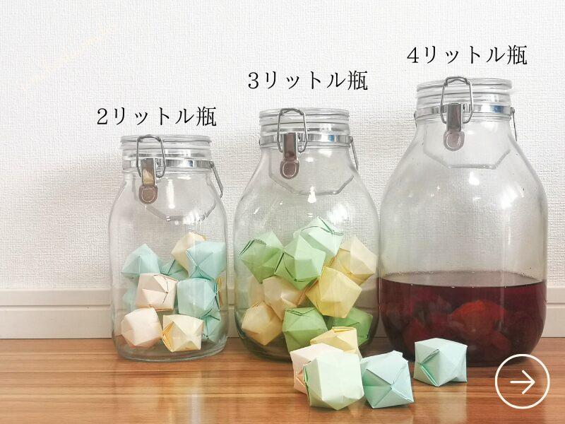 1㎏の梅の実で梅酒を漬ける場合は3~4リットル瓶くらいが目安です。