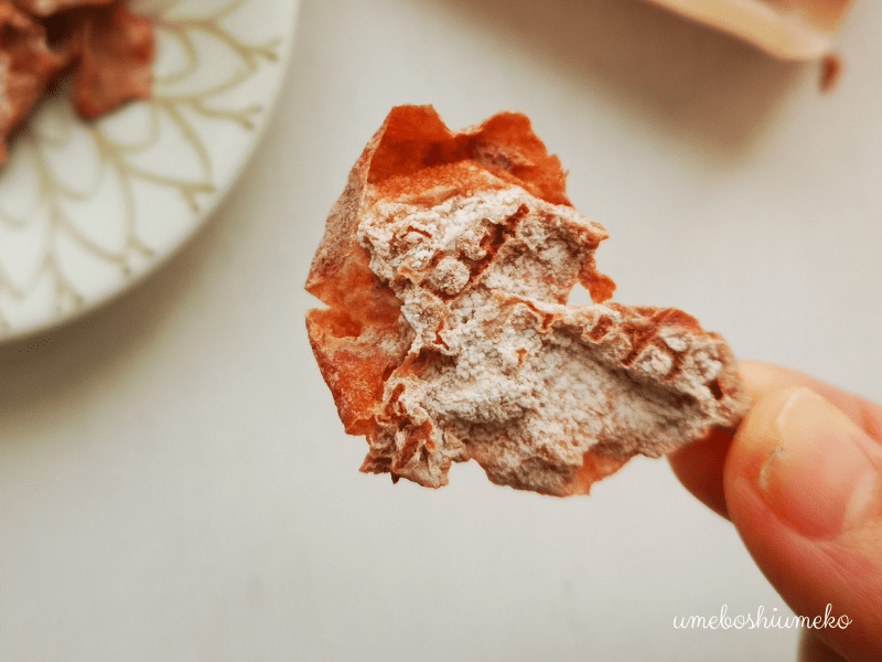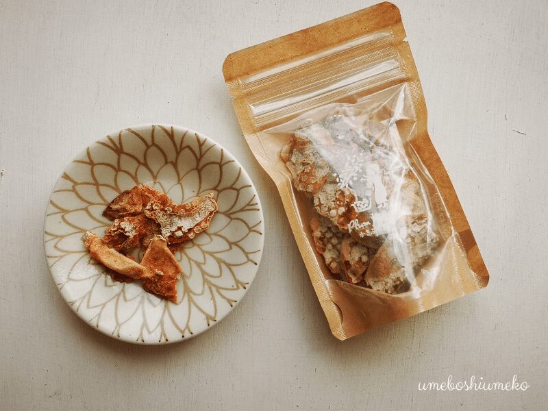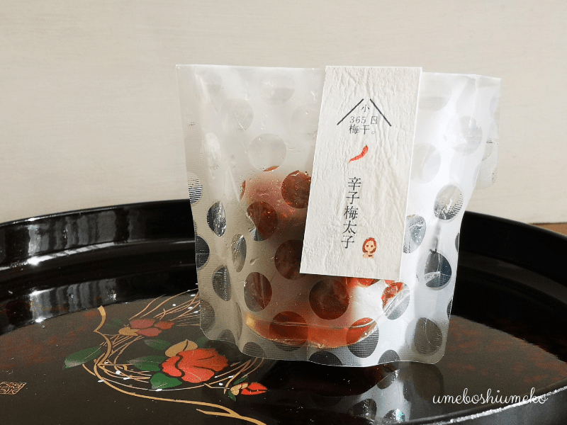 梅干しのまわりには唐辛子などがまぶしてあって、辛すぎない、でもちゃんとぴりっと。