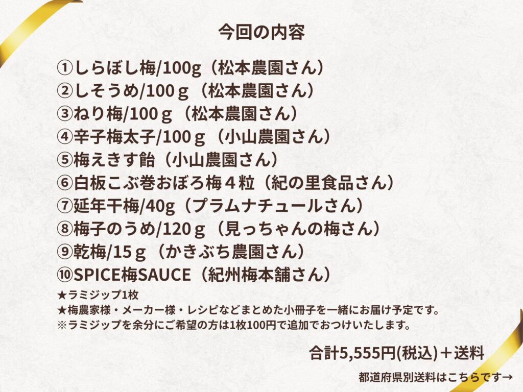 今回7社の梅農家様、梅干しメーカー様の商品、全部で10商品が入っています。